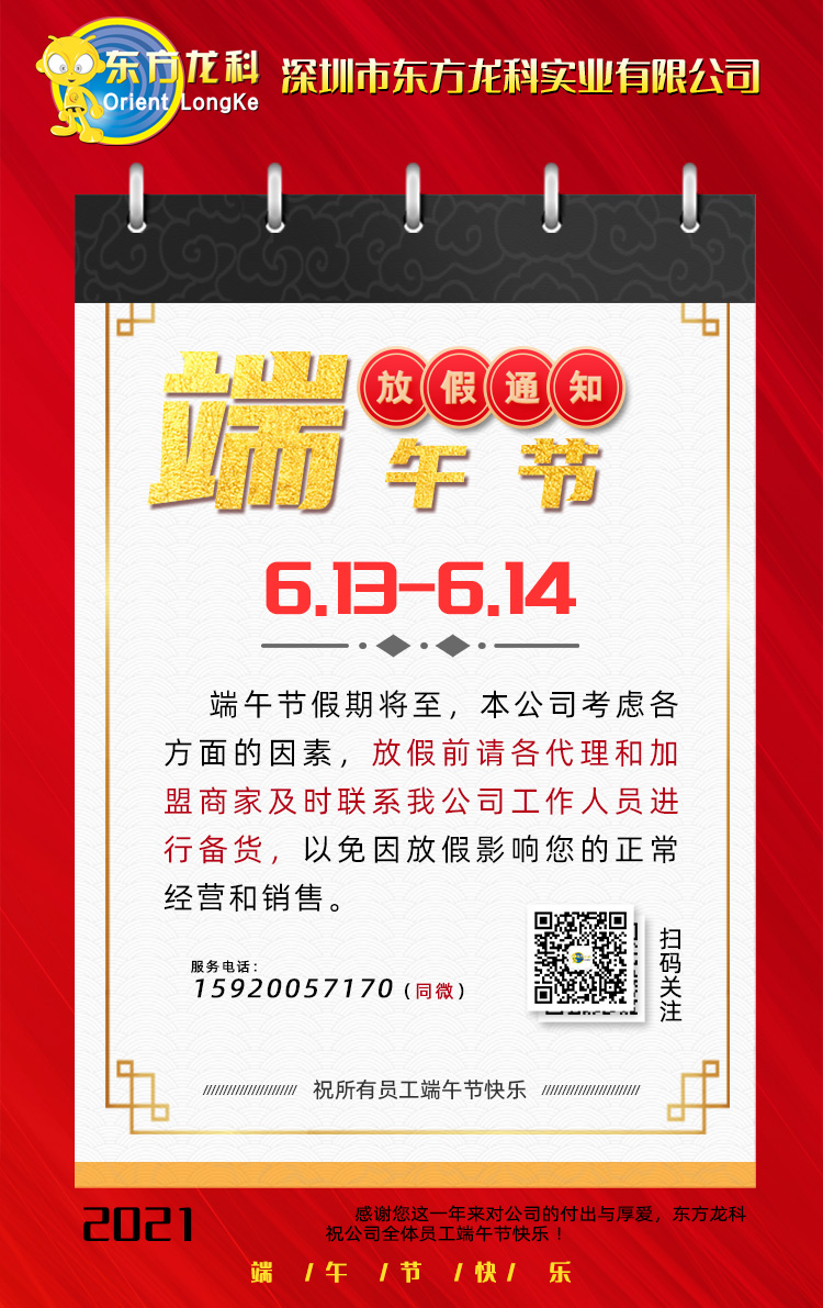 東方龍科2021年端午節(jié)放假通知